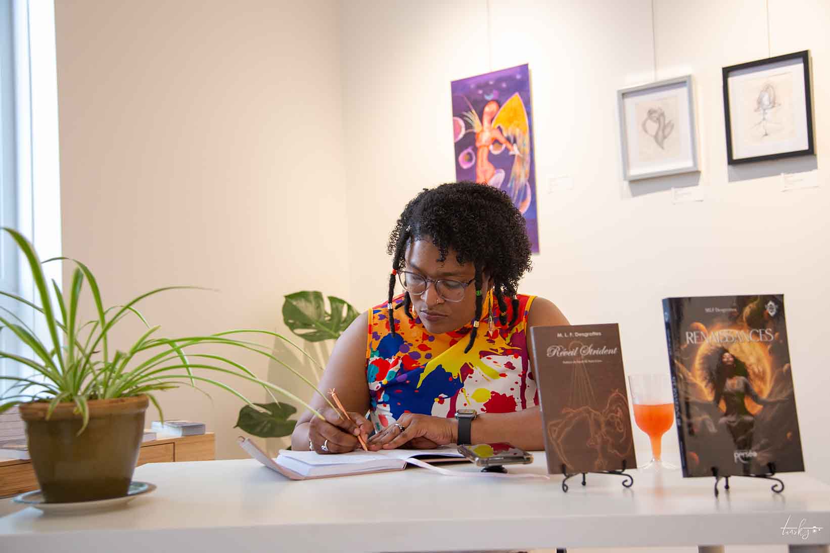 Murielle Ludny Francois Desgrottes, connue sous le nom de plume MLF Desgrottes, est une jeune auteure polyvalente. Avec une imagination débordante, elle dessine, peint et écrit depuis sa tendre enfance. Il y a quelques années, elle a publié son premier recueil, « Réveil strident », composé de textes inspirants. Aujourd'hui, elle vous présente son deuxième livre, « Renaissances », un roman fantastique mêlant fiction et romantisme. Elle s'efforce de se faire une place dans le monde des artistes en partageant les histoires de son univers fictif, construisant un répertoire riche et captivant pour faire rêver ses lecteurs.